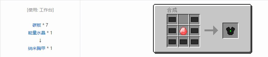 纳米胸甲是一种用电力损耗代替生命值损耗的装备,穿齐整套纳米装备防御力很强,可抵挡岩浆与虚空的伤害。