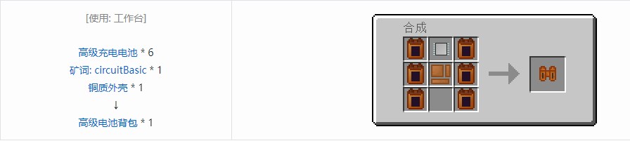 类似充电背包,载电量600kEU,只能在CESU、MFE或者MFSU里面充电。
