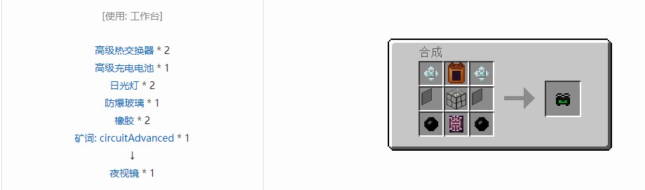tip2: 夜视镜的合成过程及其繁琐,其夜视效果完全可以通过药水代替,其最大用途仅用于合成“纳米头盔”