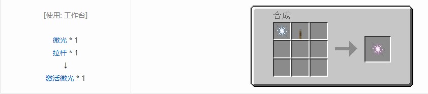 激活微光收到红石信号后会把所有送来的实体丢在原地。没有红石信号时,它和普通的微光无异。