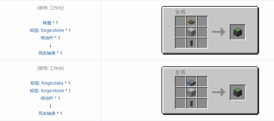 在前方放置包含 羊毛/风帆/风帆框架 没错没有帆也行的结构后,空手右键风车轴承即可转化为动态结构并开始产能,再次空手右键风车轴承将动态结构变回方块。