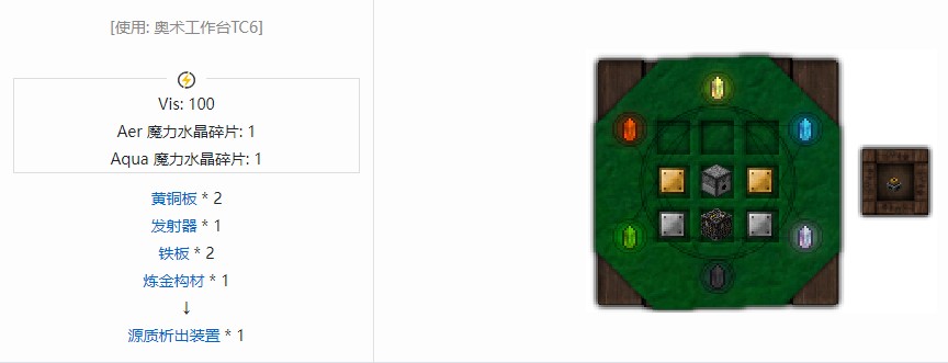 可以从所依附的管道系统或者其他可以存放的容器中抽取源质,输送至以装置为中心的 16 格范围内(指罐子和装置间隔 14 格,且无论那个方向是否有方块阻碍)的要素罐子中,要素罐子需要放在装置的析出面(有黄铜的一面)所在的同一侧。