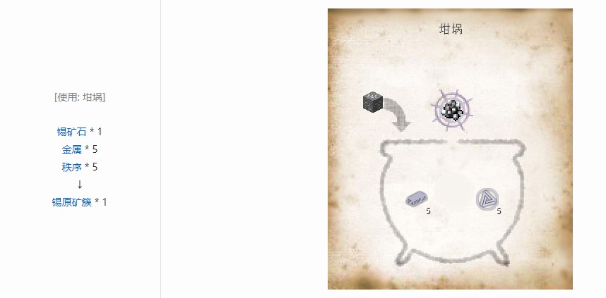 神秘时代中炼金产物,可通过炼金获得,也可用附魔炽心的镐子挖掘锡矿石有几率获得掉落。