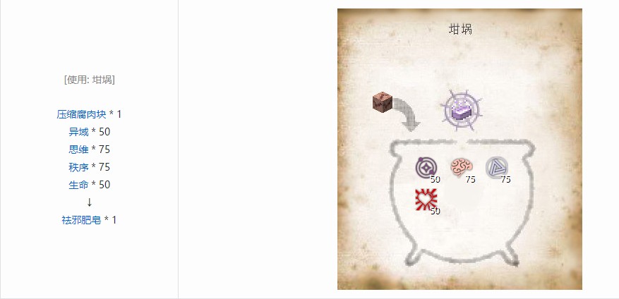 将压缩腐肉块扔进含有50外域、75思维、75秩序、和50生命的坩埚(或是给神秘炼金塔提供同样数量的源质)得到。