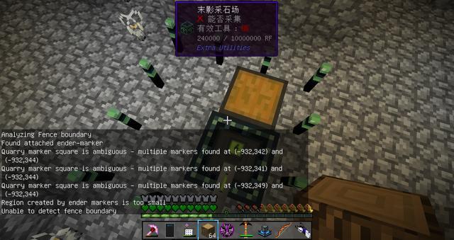 右键末影采石场,如果显示的是白字,则说明摆放正确,文字如图A