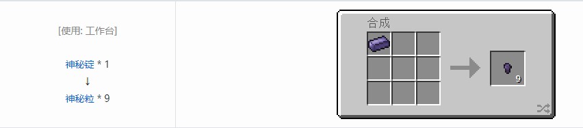 神秘时代的一种基础材料,使用神秘锭通过工作台转换获得。