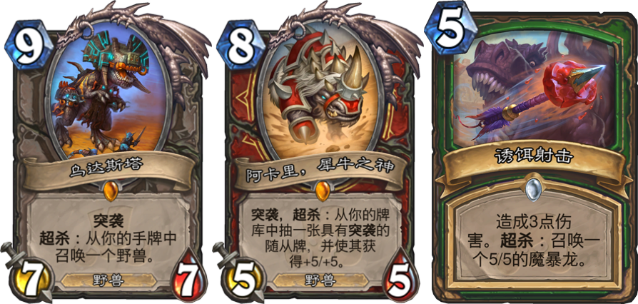 讲道理“超杀”条件的触发并不算简单,若是没有突袭或冲锋的随从想触发这个机制都必须达到站场的条件,在这个卡牌强度日益渐强的时代解掉单个随从还是很简单的,所以在很多种情况下“超杀”显得有些笨重,只有带突袭的随从或者是“超杀”法术才能达到可控的范围。