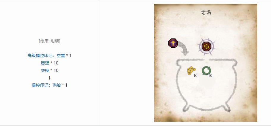 某些印记会发出需求指令。如果印记需求特定物品来完成任务。它会建立一个次级信号告知傀儡要从标记有空置印记的容器内取得物品。
