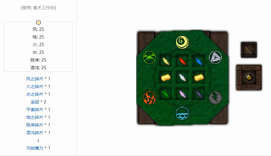将元始魔力放在背包中,每隔一段时间原始魔力会随机掉落出一些可供法杖充能的要素球。但通常只会提供1-5cv的魔力。