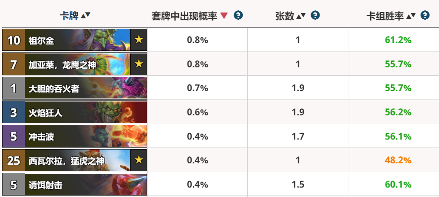 《炉石传说》拉斯塔哈版本首日卡牌出场率排行