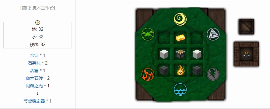 安装上节点稳定器之后节点的魔力恢复速度减半。通入红石信号可以关闭稳定器。