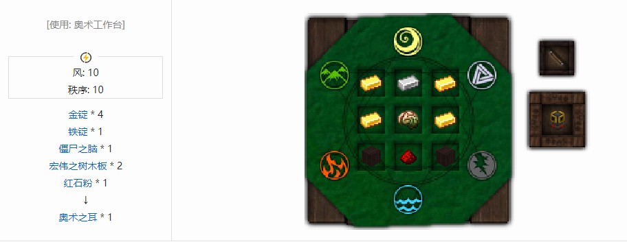 右击奥术之耳调节音度,如果戴上揭示之护目镜就可以看见音符的代码(一共有25个音,0-24),同理戴着看音符盒也可以看见音符代码,调音时就不需要反复去听了,当有符合设定音度的音符盒被激活发出音度时会产生一个0.5tick的红石信号。