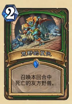 2费复活本回合死亡的野兽,即便没有任何套路,我们在本回合野兽解场之后,也可以复活一波,2费而已,几乎复活什么都赚(2只山猫我都感觉OK)。何况还有和肖尔、犀牛、以及火箭炮的配合,下限不亏,上限血赚,尤其是火箭炮和荒野复仇一波,还能给祖尔金战吼增加收益!适合卡组:中速猎、亡语猎。