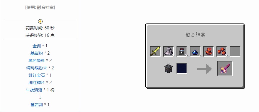 与原版剑相同,合成后自带锋利Ⅵ,攻击伤害为16.5点,且拥有无限耐久。