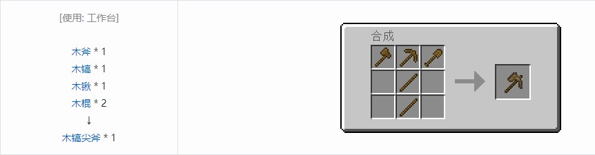 镐尖斧的挖掘等级及效率与对应材质的其他工具完全相同。