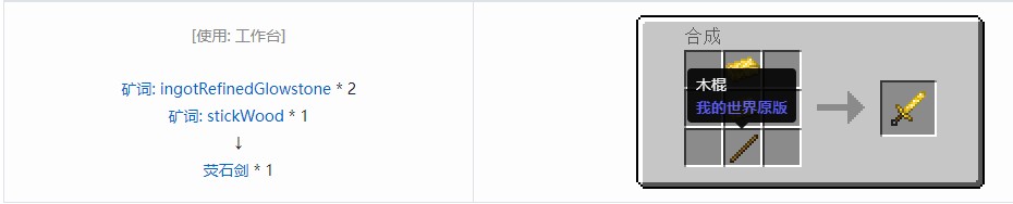 由强化荧石锭制成的剑,格外显眼,1.6攻击速度,9攻击伤害,可以在熔炉里烧制成强化荧石粒。