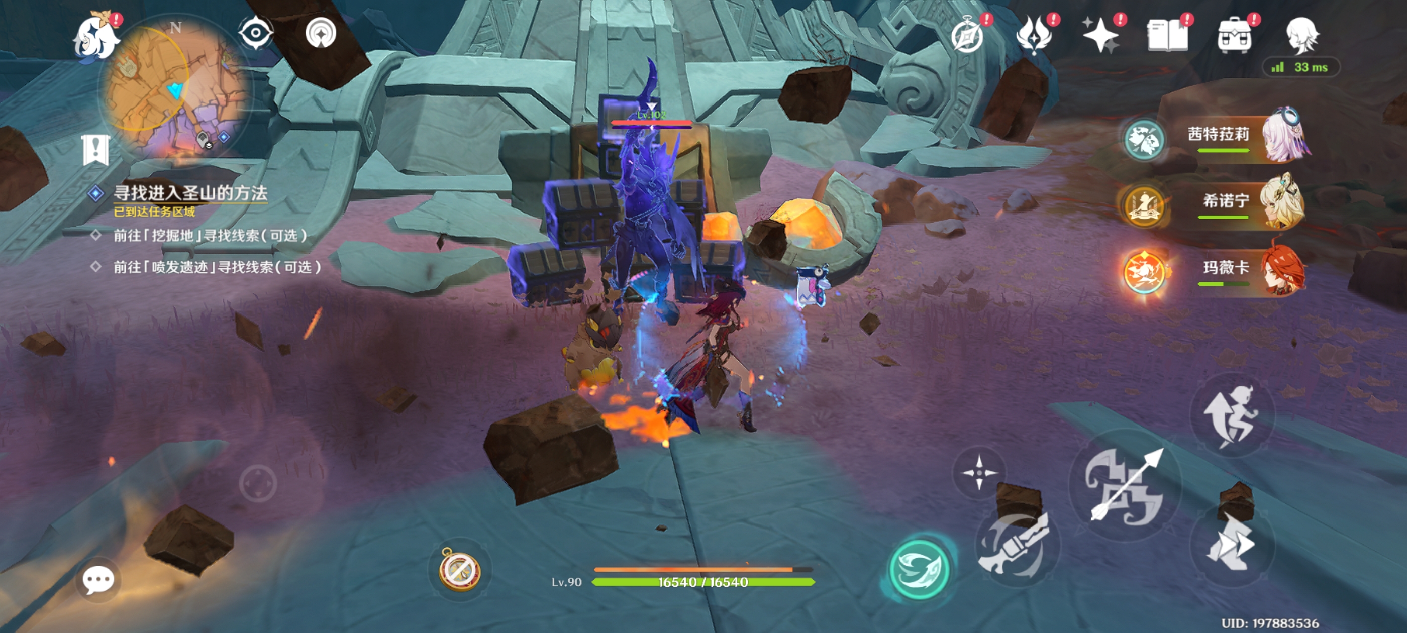 接着,我们前往部落西侧石火坠陨处的遗迹调查前往火山的通路,获得火神瞳*2