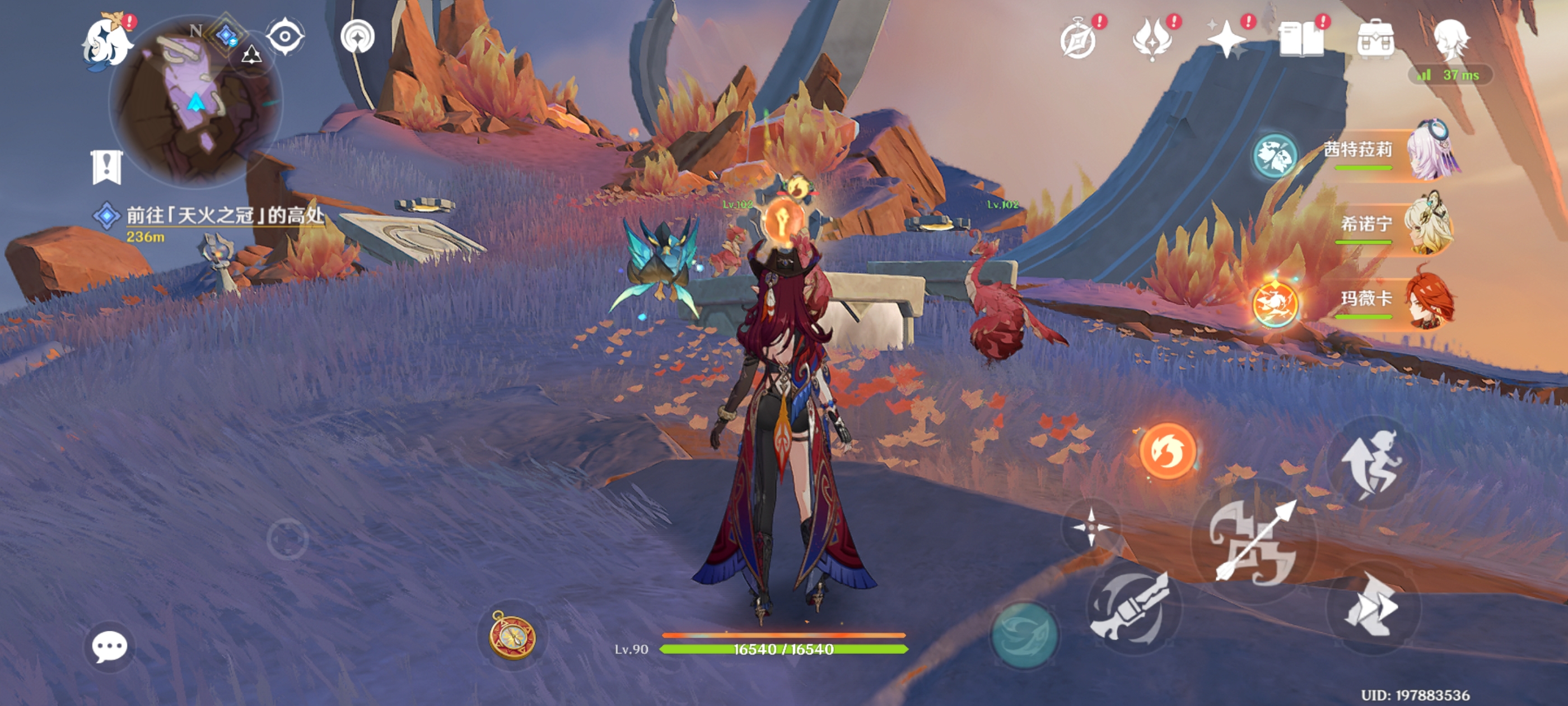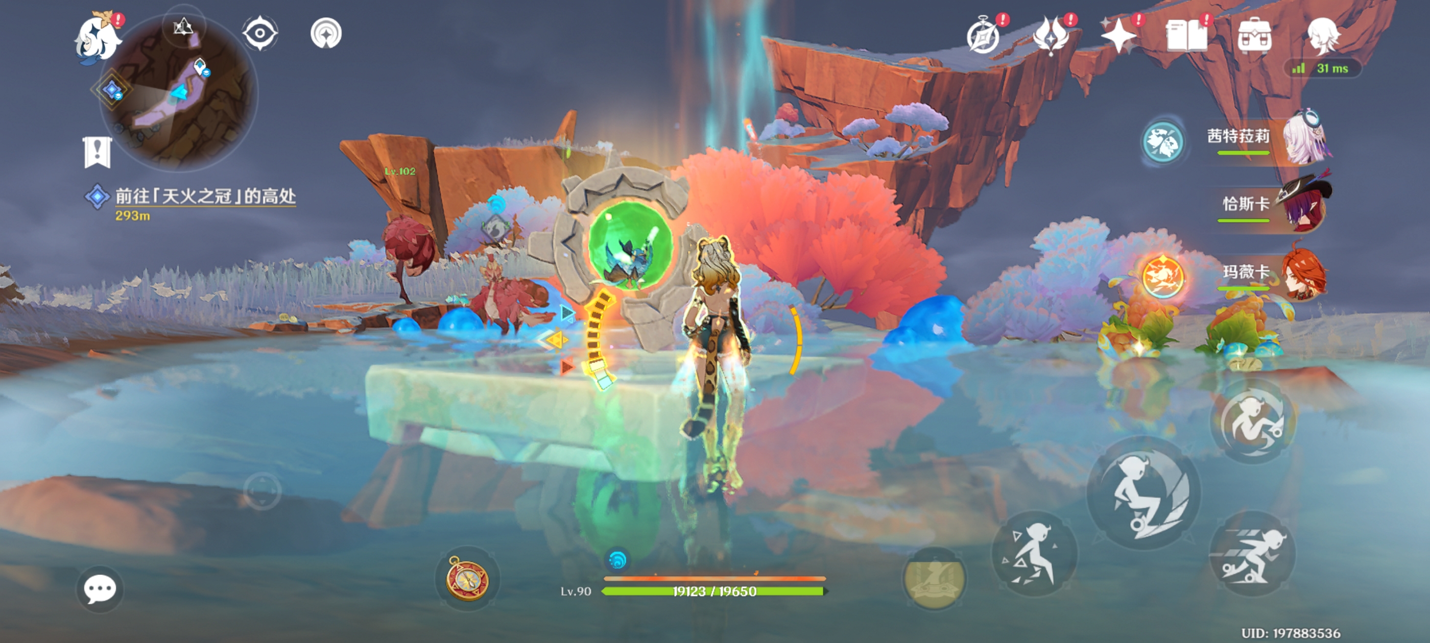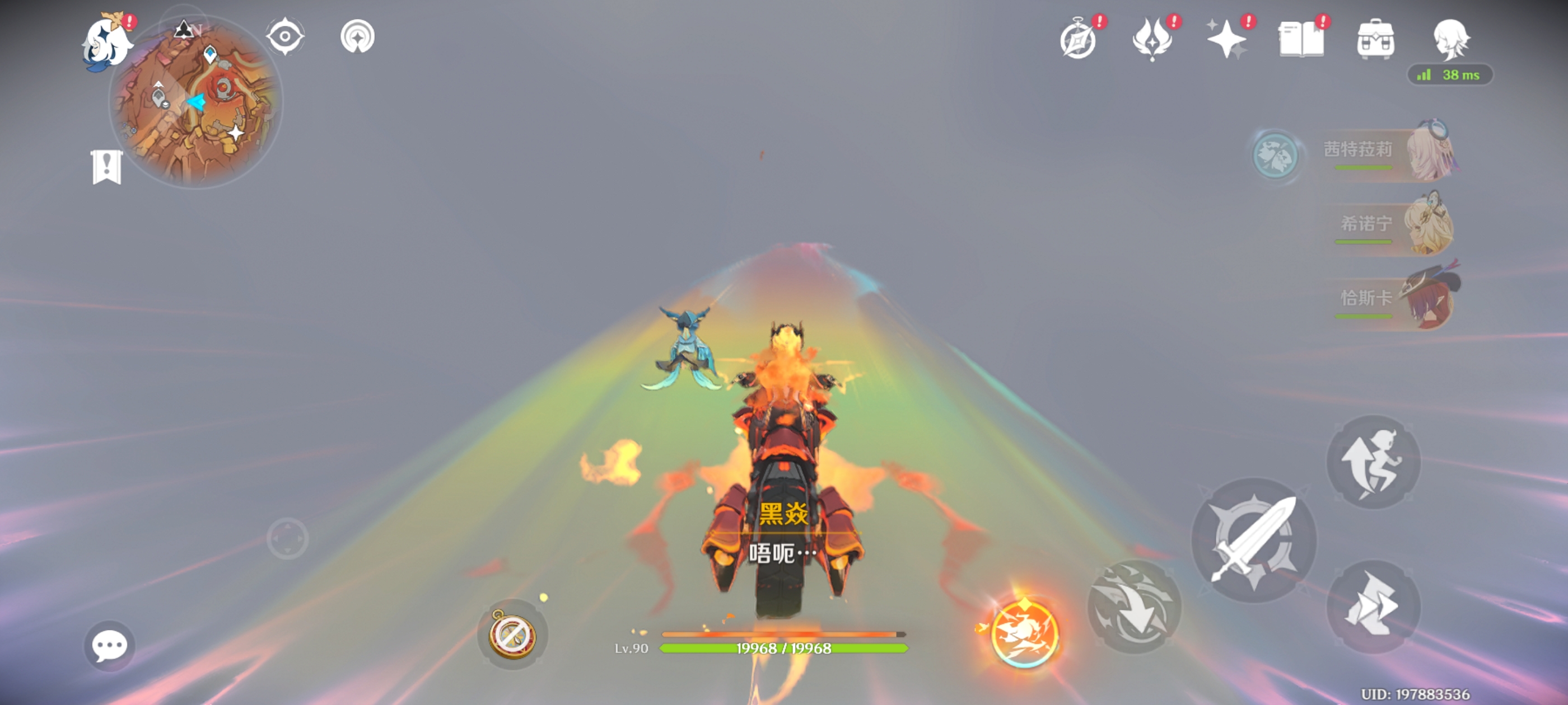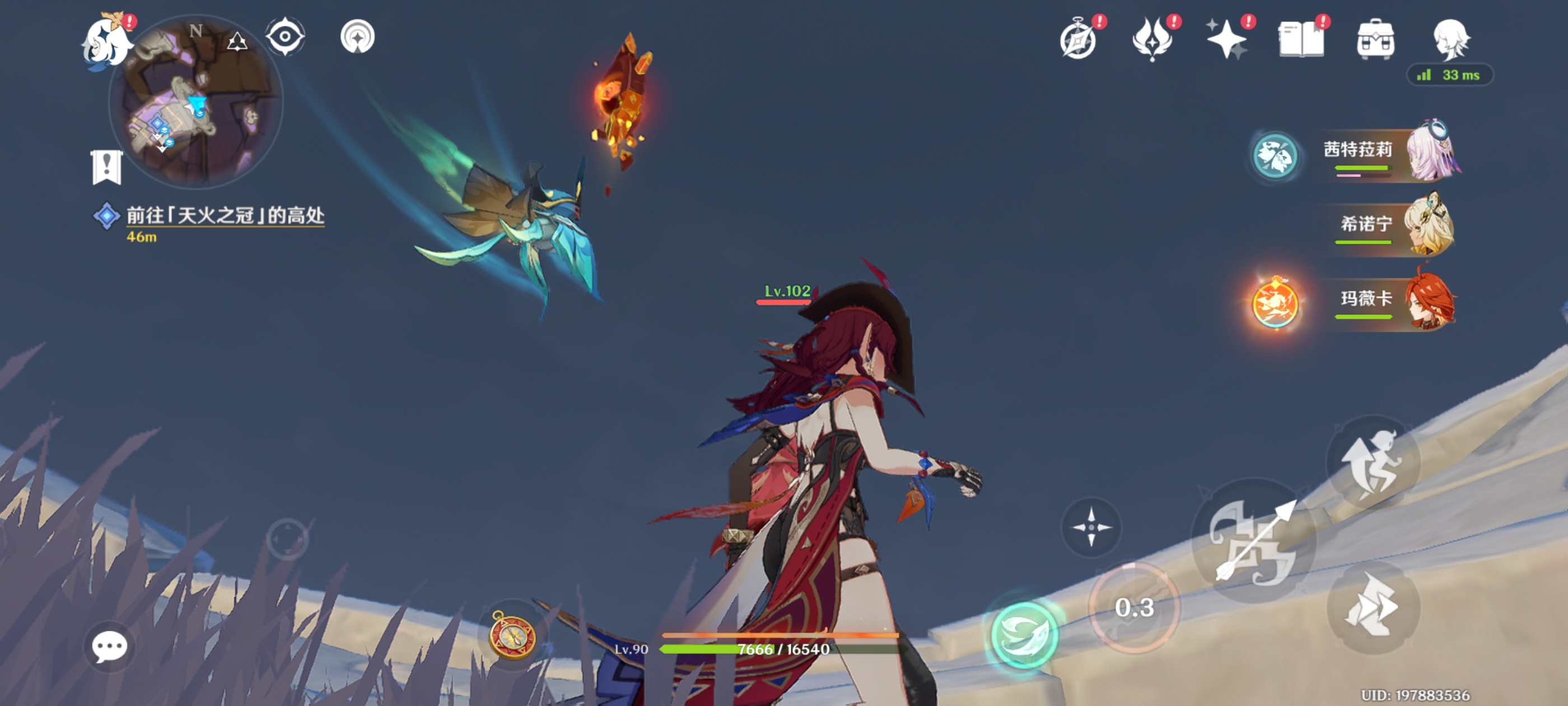 解锁锚点,触碰铭印,附身绒翼龙前往另一侧的岛屿,获得火神瞳*1