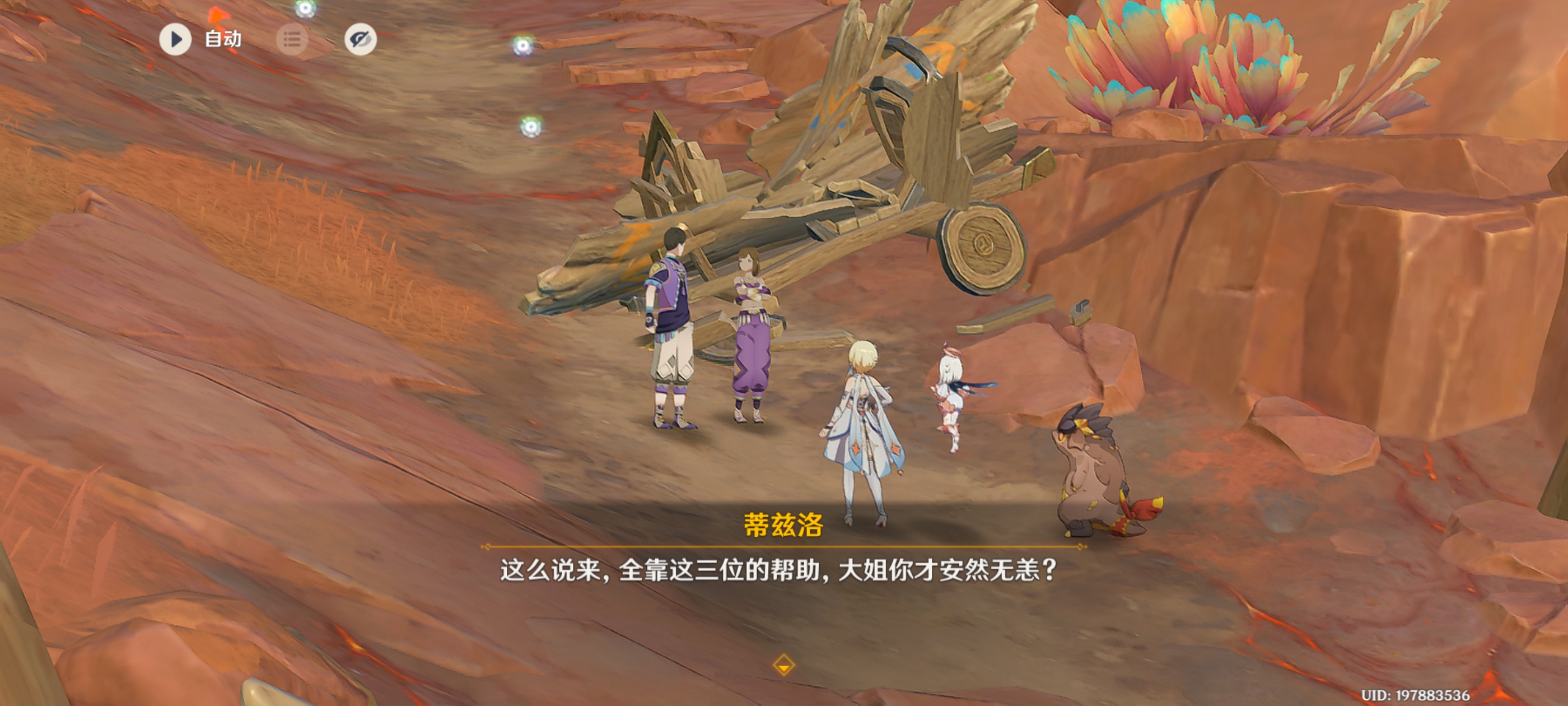任务前引:旅行者和派蒙终于帮助小龙消除了「焰主之祝」,再次回到了初见之处......
