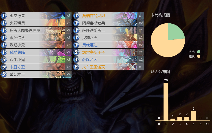 因为本次《炉石传说》的新版本拉斯塔哈大乱斗恰逢月初,很多人在版本初期不敢大胆去合卡,又苦于很难上传说。所以,现在小白就给各位推荐一套上传说效率非常高的卡组!废话不多说,请看图和代码。