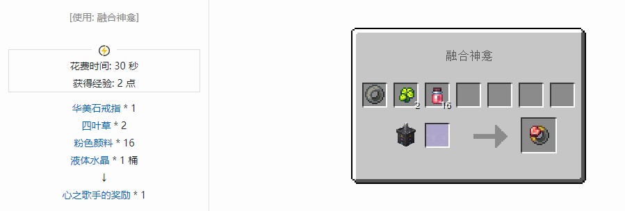 使用幻想石戒指、四叶草、粉色颜料在融合神龛制作。