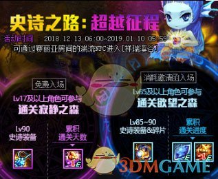 新版的史诗之路有4个地下城组成,其中一个是可获得80~90级的史诗,并且不消耗深渊票,但是每天限制3次,剩下的三个图需要消耗深渊票,可获得85~90级的所有史诗。因为这三个图的史诗爆率不同,所以需要的深渊票数量也不同,分别需要30/45/60张深渊票,这个爆率是在史诗之路的基础上进行加倍的。除了可获得史诗装备之外,累积登录还可以获得破魔石(相当于30张深渊票)和85史诗装备跨界石(所有部位),同时,在史诗之路中累积刷够20000票还可获得90级武器跨界石和90级防具跨界石。最后建议还没有攒够20000票的小伙伴,加紧攒票了,到时候史诗之路一展欧皇的风采。