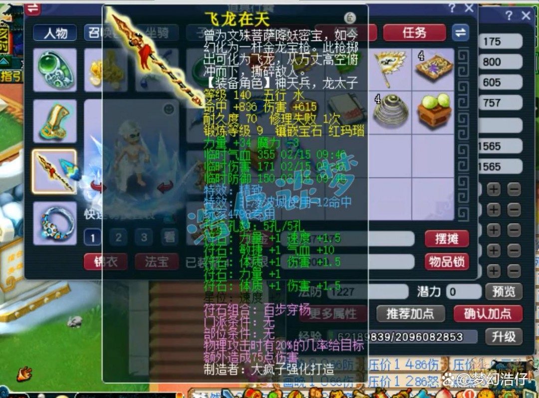 140级专用精致武器,凌波城专用的,加34力、减3魔,打了9锻红玛瑙,初伤非常高。
