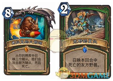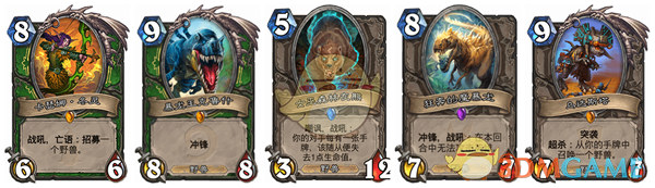 二营长组件(开炮组件):这套卡牌最强大的地方,我们可以在10费的时候配合强大随从和野兽,因为野兽是立即死亡我们可以配合荒野的复仇,可以配合出强大的野兽召唤和复活效果,只不过这个comb比较难打,但打出来特别厉害,其次就是也比较容易配合。