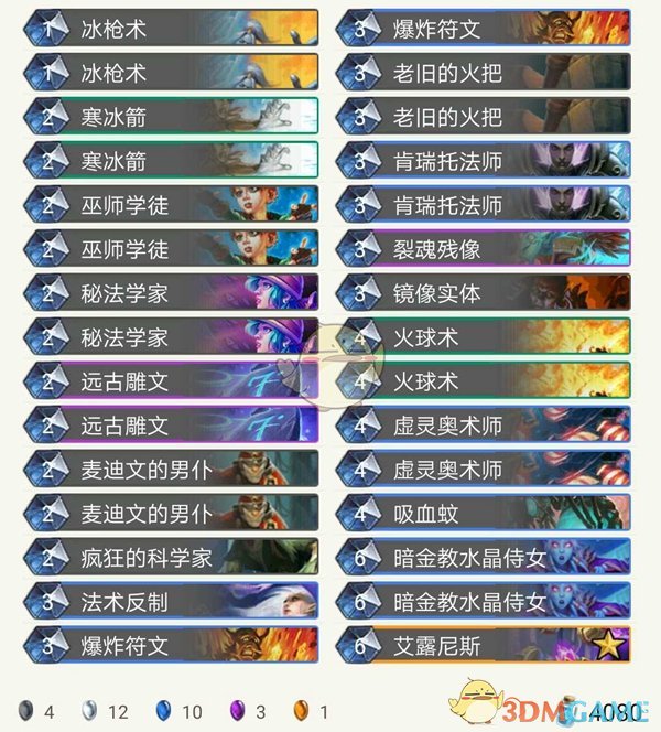 可以看到我们带的奥秘有四张,笔者后期换成了五张,六张都有,总之基本是除了343和223、直伤法术这些,其他所有卡都可以换,但奥秘不能带太多,五张极限了。