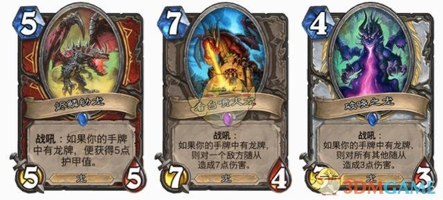 除去巨龙怒吼开出的龙牌以外,战士职业和中立卡池本身也有一些龙系配合卡,他们本身身材小亏发动效果则大赚,而对于战士来说,有了巨龙怒吼就能提高这些龙系combo卡的抓位。