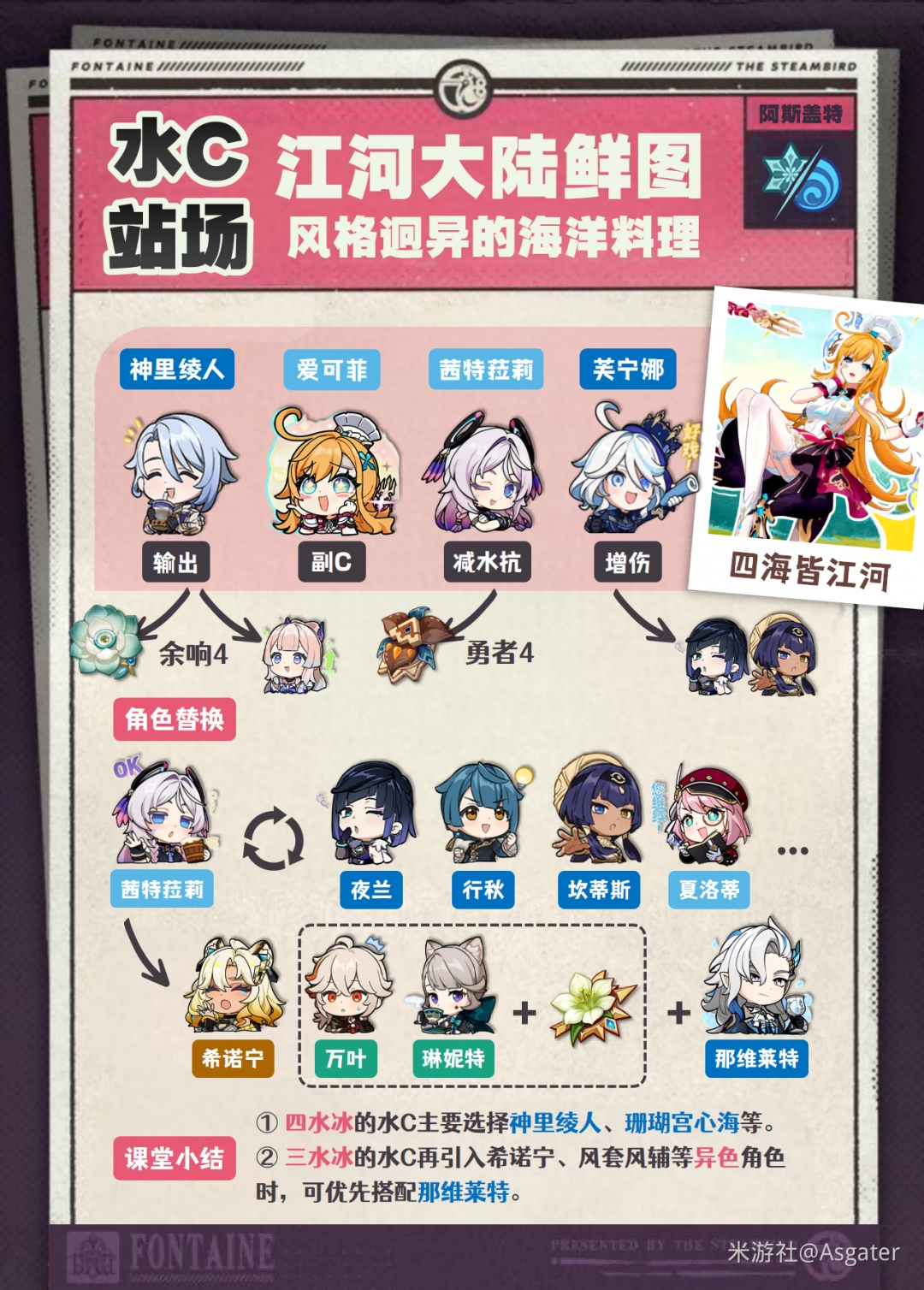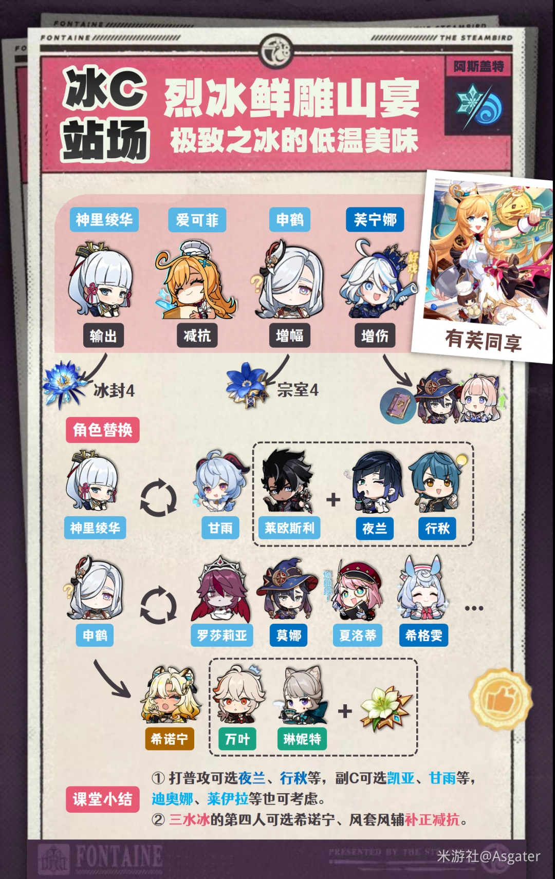 ③ 当前主打直伤的水C不多,四水冰的站场水C主要是神里绫人。