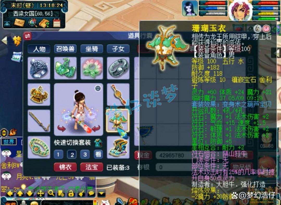 100级葫芦宝贝套铠甲,熔炼后体魔双加43,防御202,打了10锻舍利子!