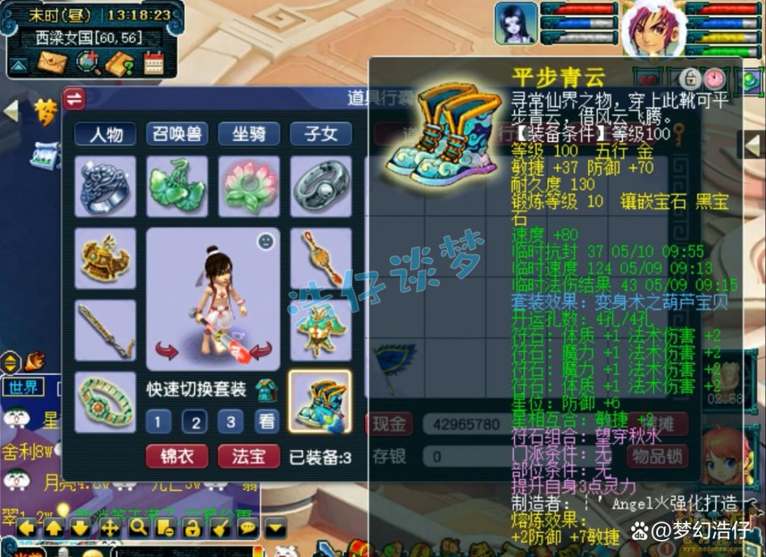 100级葫芦宝贝套鞋子,打了10锻黑宝石!