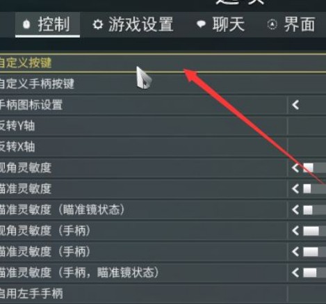 2.打开选项后就会看到“控制”设置,第一项就是“自定义按键”。