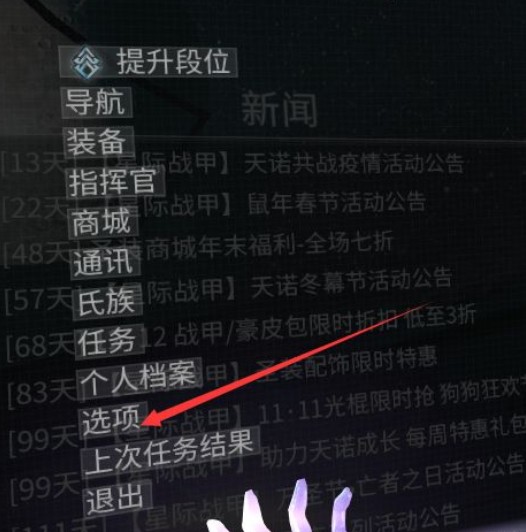 1.首先在飞船上按ESC键,然后点击“选项”。