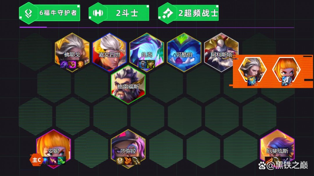 优先6福牛守护者,8级4福牛守护者4超频战士,9级【纳亚菲利】【悠米】换成五费。