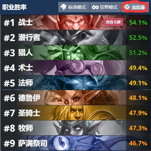 图为截止12月11日的竞技场模式各职业胜率,