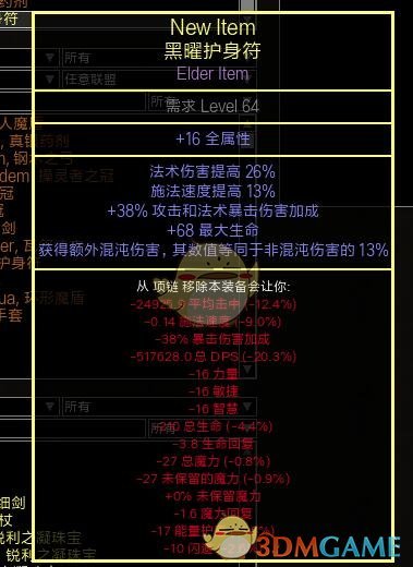 武器:黄装 属性选择(法术伤害,冰伤,法术暴击,施法速度,额外混沌伤害)