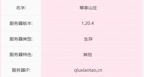 我的世界里面有很多的服务器,每个服务器都有自己的独特的玩法,今天给大家带来的服务器的名字叫:幕亭山庄,那么下面就是这个服务器的一个具体的IP地址.