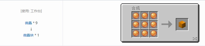 玩家可以使用9个微晶在工作台上合成1个微晶块。