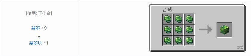 玩家可以使用9个翡翠在工作台上合成1个翡翠块。