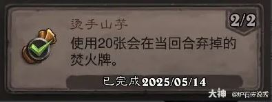 累积型成就,迷你包最恶心的成就。焚火牌都很恶心,卡手又会自动丢弃,所以笔者做这个成就被恶心到了。选择法师是因为法师复制法术的牌最多。倒带和435娜迦都可以复制。