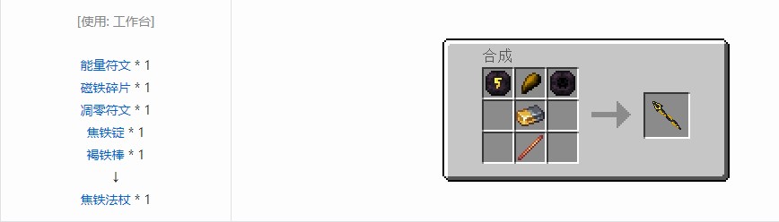 生成的焦铁魔法只能命中敌对生物,接触其他实体只会穿过。命中后给予目标5秒(100 tick)凋零II,并额外有1/150概率在目标位置生成1个闪电。