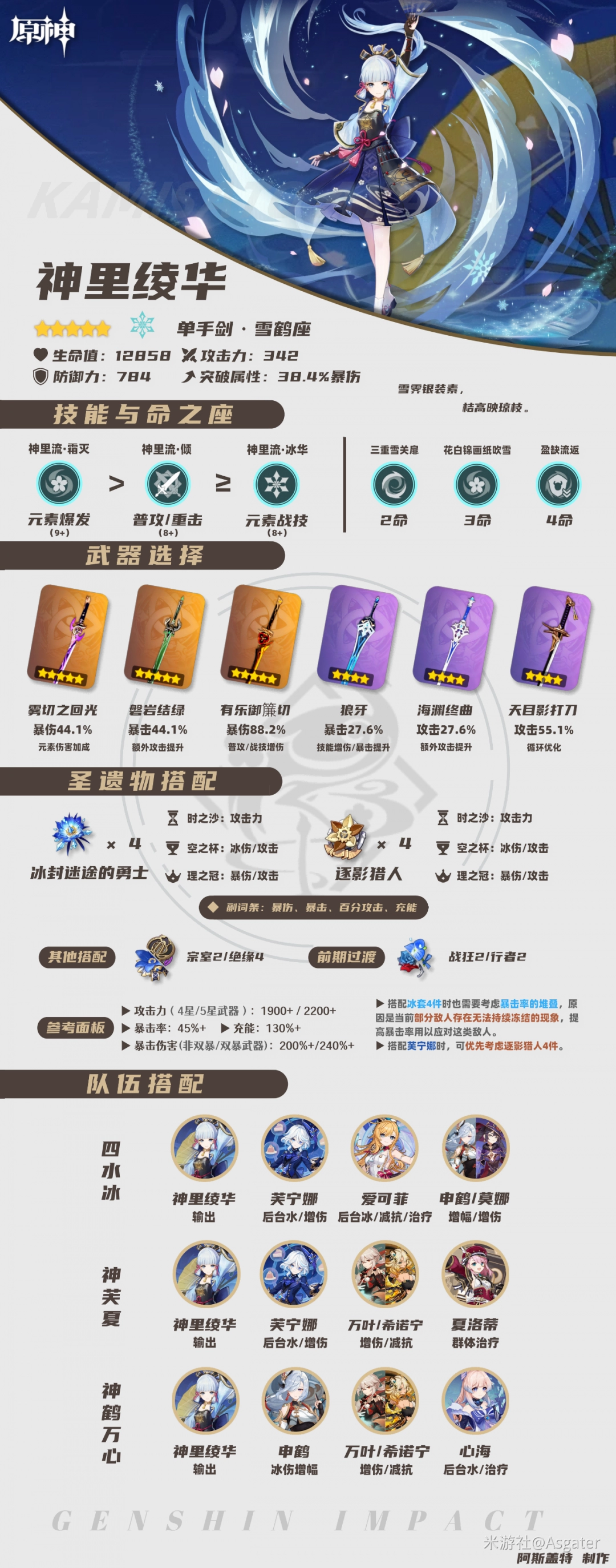 本期是【神里绫华】的一图流养成攻略,大家可以快速了解神里绫华的养成与培养材料!