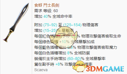 因为hit数很高,所以我采用了暴击流来放大这种多hit但单次伤害小的技能(可以看到满LV才49%的基础伤害)因为正好限制了剑和斧头,剑天赋和双持可以有很好的暴击爆伤的数据加持。所以我决定使用双持剑走暴击天赋,拉高爆伤来提升整体伤害。而且作为一个投射物技能可以很好的享用零点投射天赋来提高贴脸的伤害。而且穿刺这个效果是保存敌人受到的物理伤害10%,所以更高的暴击伤害可以很好的提高这个值。