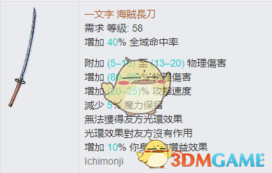 日本刀一文字也是很好的选择,极高的攻速,在初期刷图方面会有很大的帮助。