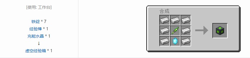 用于吸收世界中的经验球实体,无GUI,且如果不导出的话该容器每次最大存储量都不一样。
