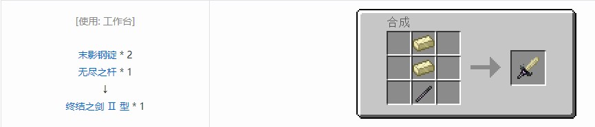 末影钢制的剑,比玄钢制的终结之剑更好,且继承玄钢制的增加头颅和末影珍珠掉率的效果。