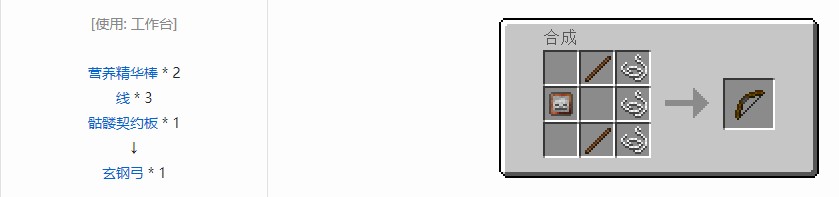 远程武器,拉弦速度与原版弓相同,消耗箭。满弦伤害为10±1点(血量×5±0.5)。