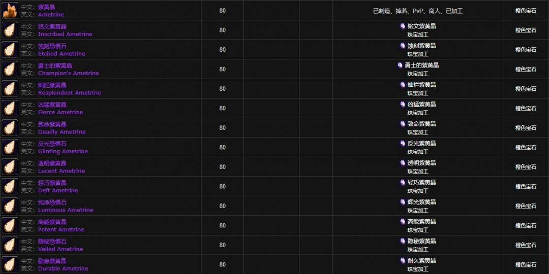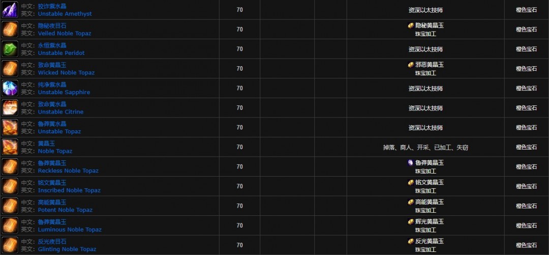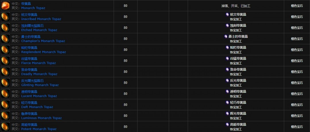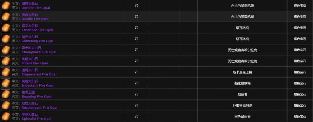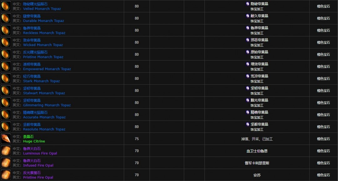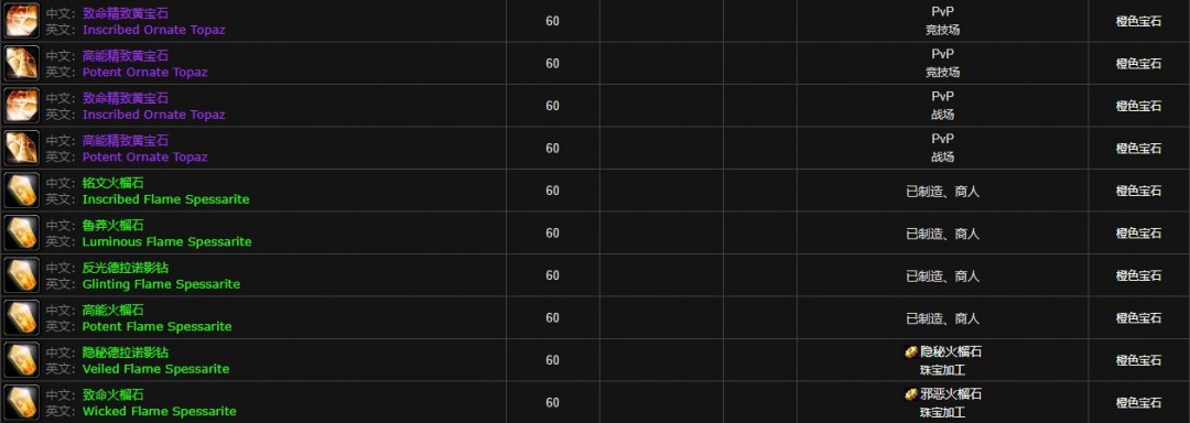 魔兽世界怀旧服宝石大全